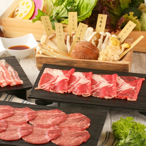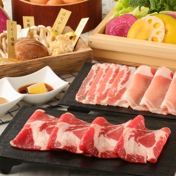 ディナーで楽しめる、北海道四元豚 or 黒牛と北海道四元豚 or 熟成牛タンのコース(しゃぶしゃぶ)120分食べ放題のクーポンです。全コース飲み放題付き。野菜・お肉にこだわったしゃぶしゃぶを、一人一鍋でお楽しみください。